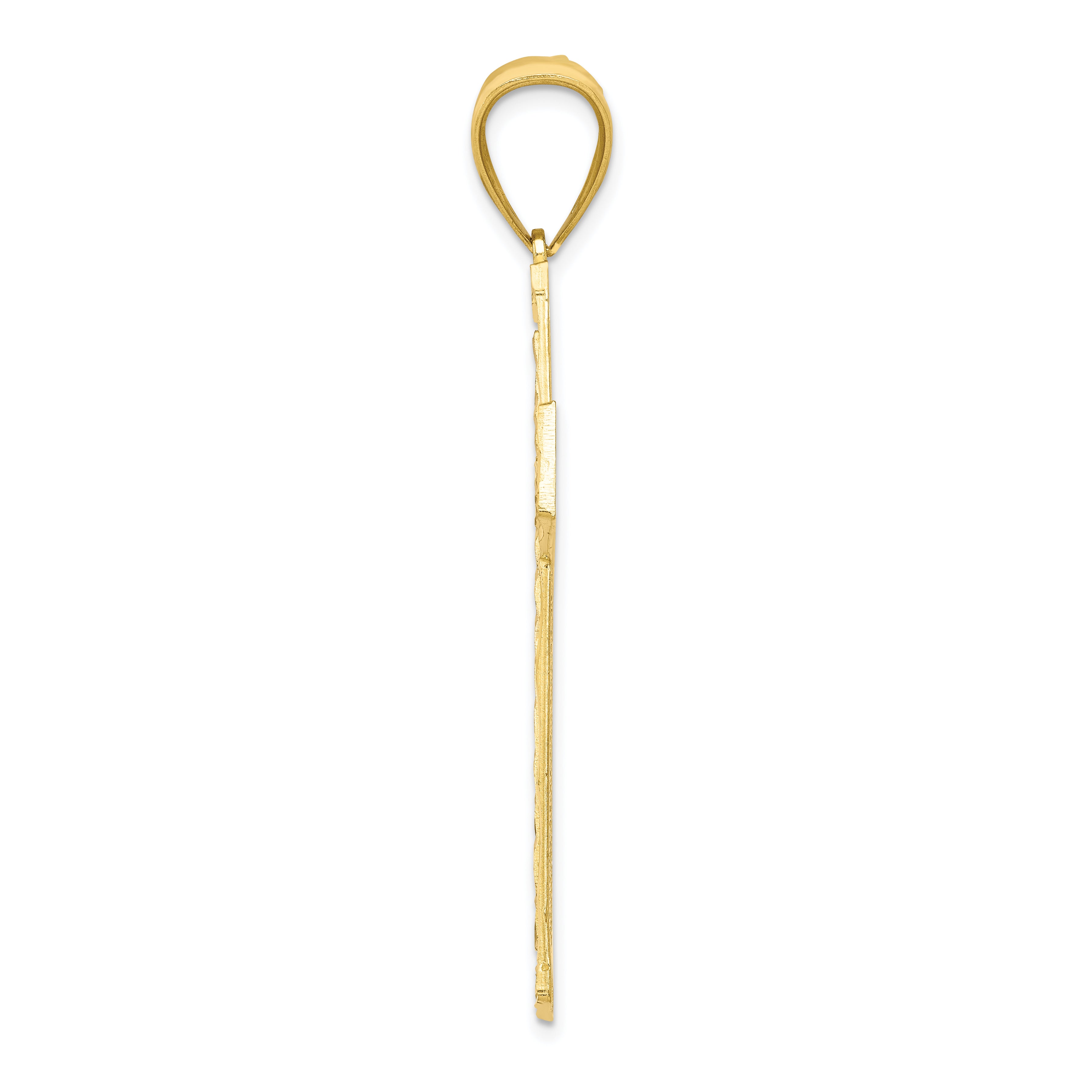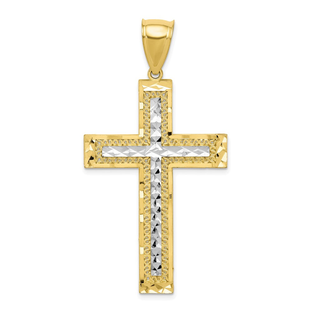 10K w/ Rhodium Diamond-Cut Cross Pendant