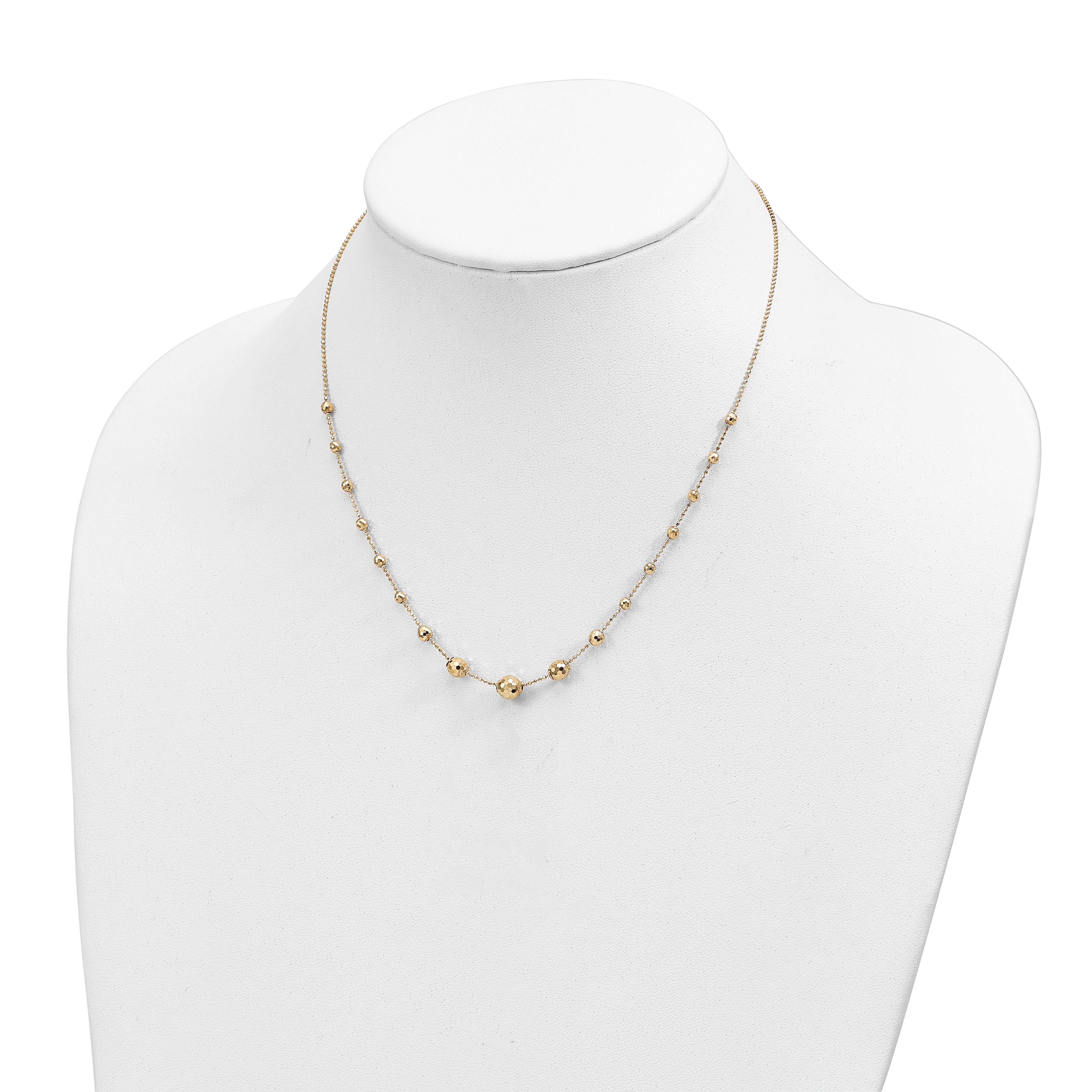 14K Polished Graduated Facet Beads 17 inch Necklace