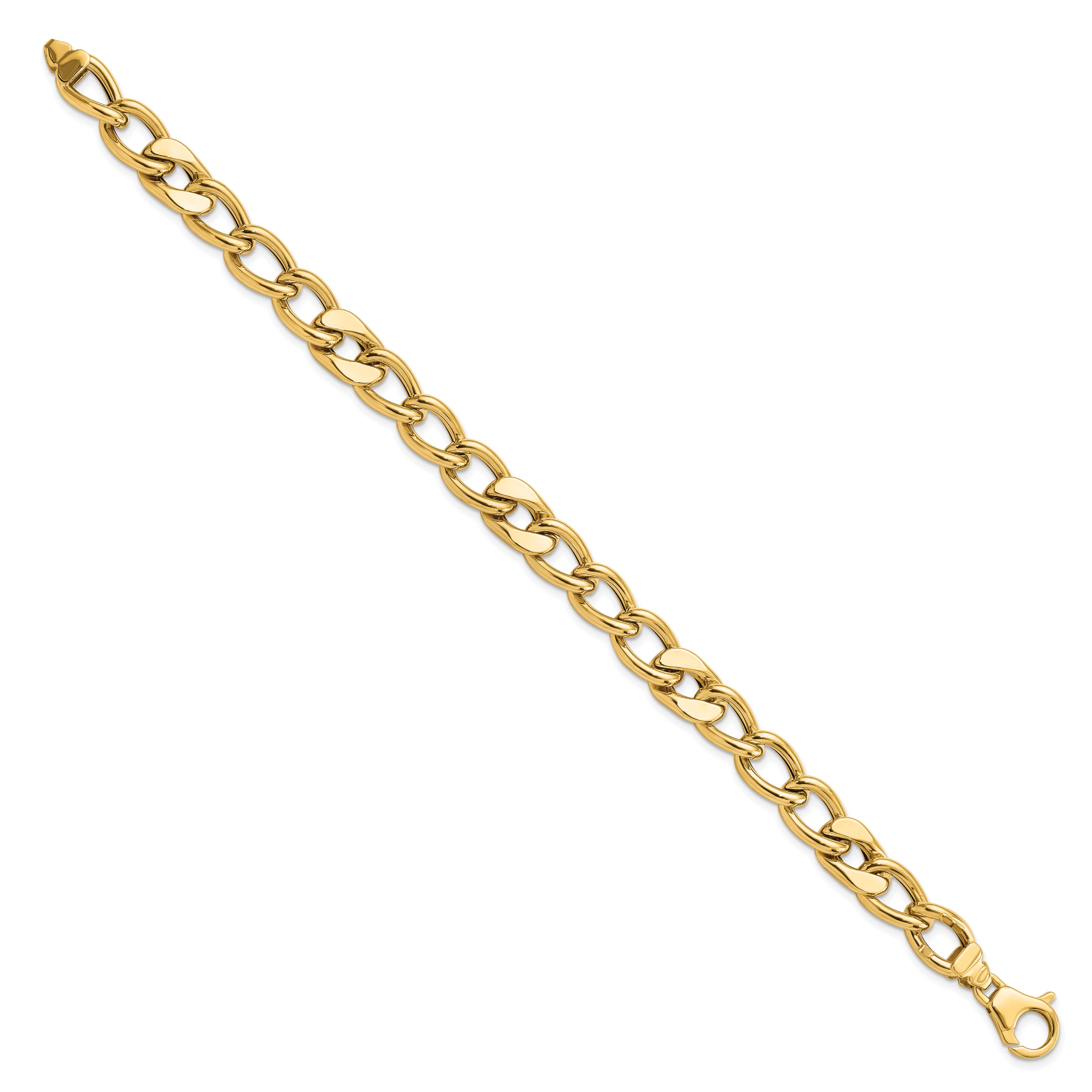 14K Polished 7.5mm Fancy Mixed Curb Link 8.5 inch Mens Bracelet