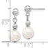 14k White Gold 7-8mm White Semi-round Freshwater Cultured Pearl Post Dangle Earrings