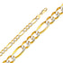 Crafted from solid 14K yellow and white gold, this 8.6MM Figaro 3+1 WP Regular chain makes a bold statement with its timeless design and premium craftsmanship. The Figaro 3+1 pattern—three short links followed by one elongated link—offers a distinctive and eye-catching look, perfect for those who appreciate luxury with an edge. Built with WP Regular construction, this chain features diamond-cut white gold accents, adding a brilliant contrast against the high-polish yellow gold for a striking two-tone finish.