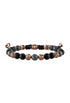 An adjustable beaded bolo bracelet with a more rugged look features semi-precious matte black onyx, a stone of protection and stamina. Interspersed with faceted matte hematite spheres, thought to promote stability and optimism, and also with black lava beads, reputed to impart calmness and strength. Accented with striped rose-tone stainless steel beads featuring the Bulova tuning fork logo. Black cord adjusts easily for a comfortable fit and is capped with two steel beads etched with the Latin GRAMMY® logo. 8MM beads.