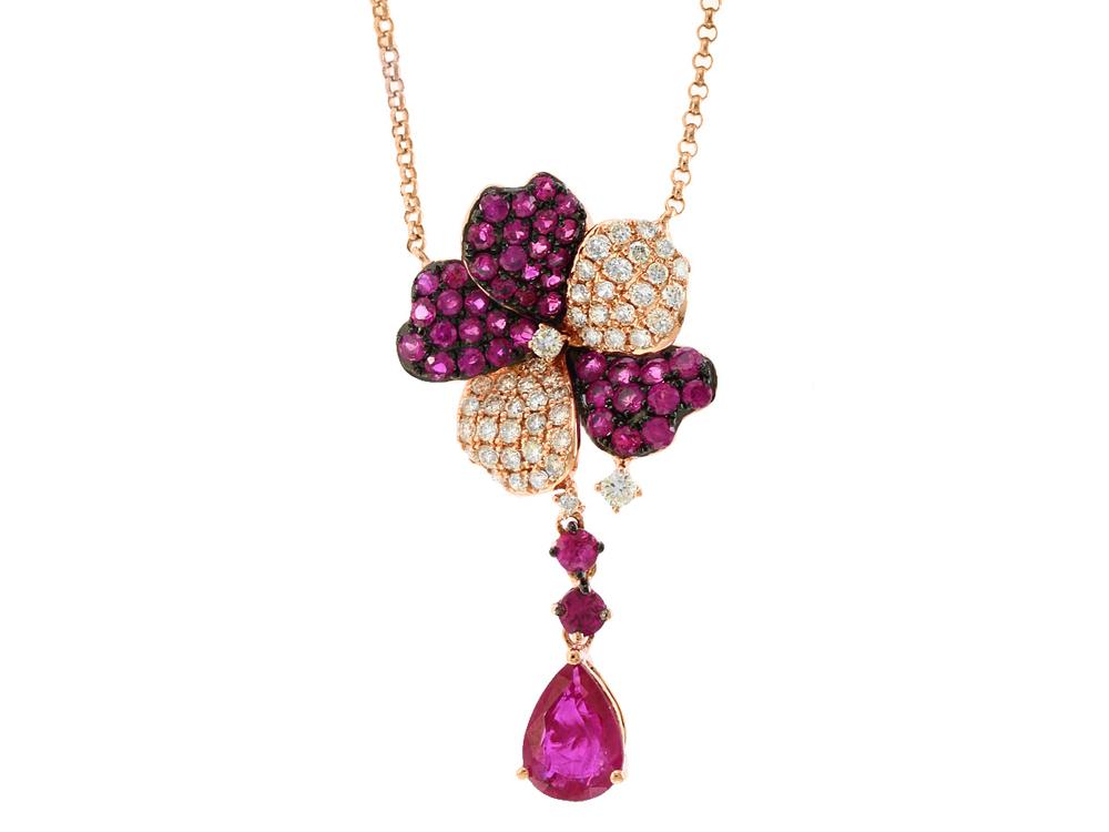 EFFY 14K ROSE GOLD DIAMOND,NATURAL RUBY NECKLACE