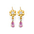 14K Yellow Gold Pink Teardrop CZ Floral Wire Hook Earrings