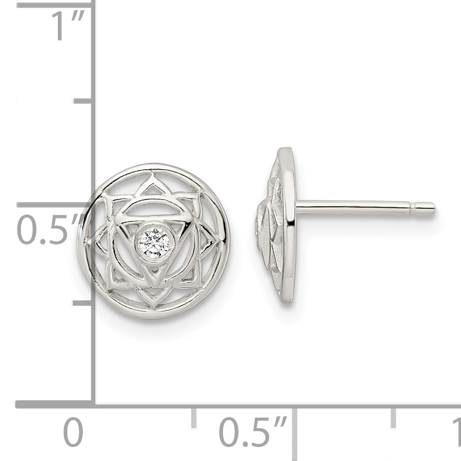 Sterling Silver CZ Solar Chakra w/Triangle Center Post Earrings