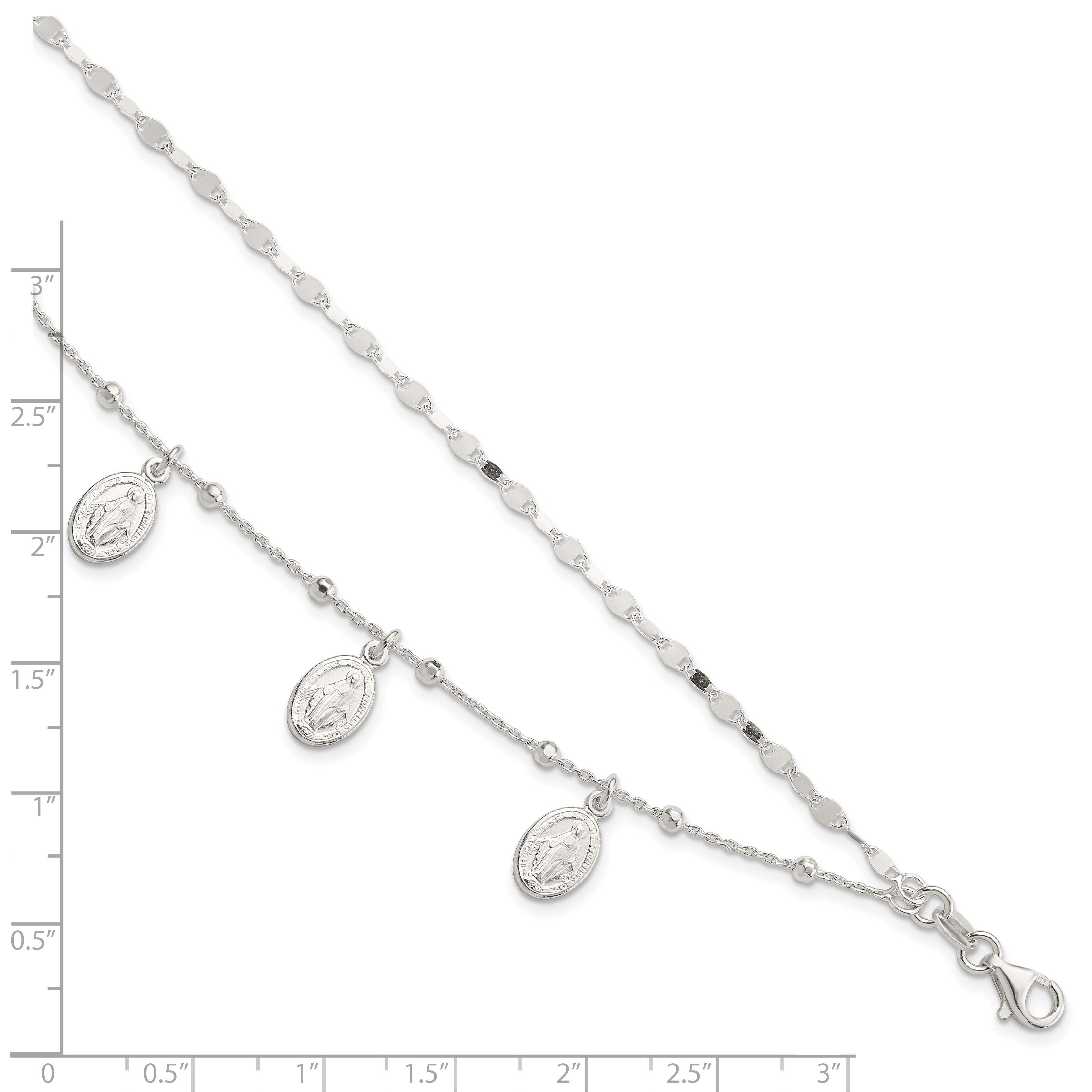 Sterling Silver Dbl Miraculous Medal w/1 in ext. Bracelet