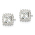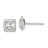 Sterling Silver Polished & Beaded Edge Square CZ Post Earrings
