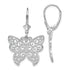 Sterling Silver Rhod-plated Polished Filigree Butterfly Leverback Earrings