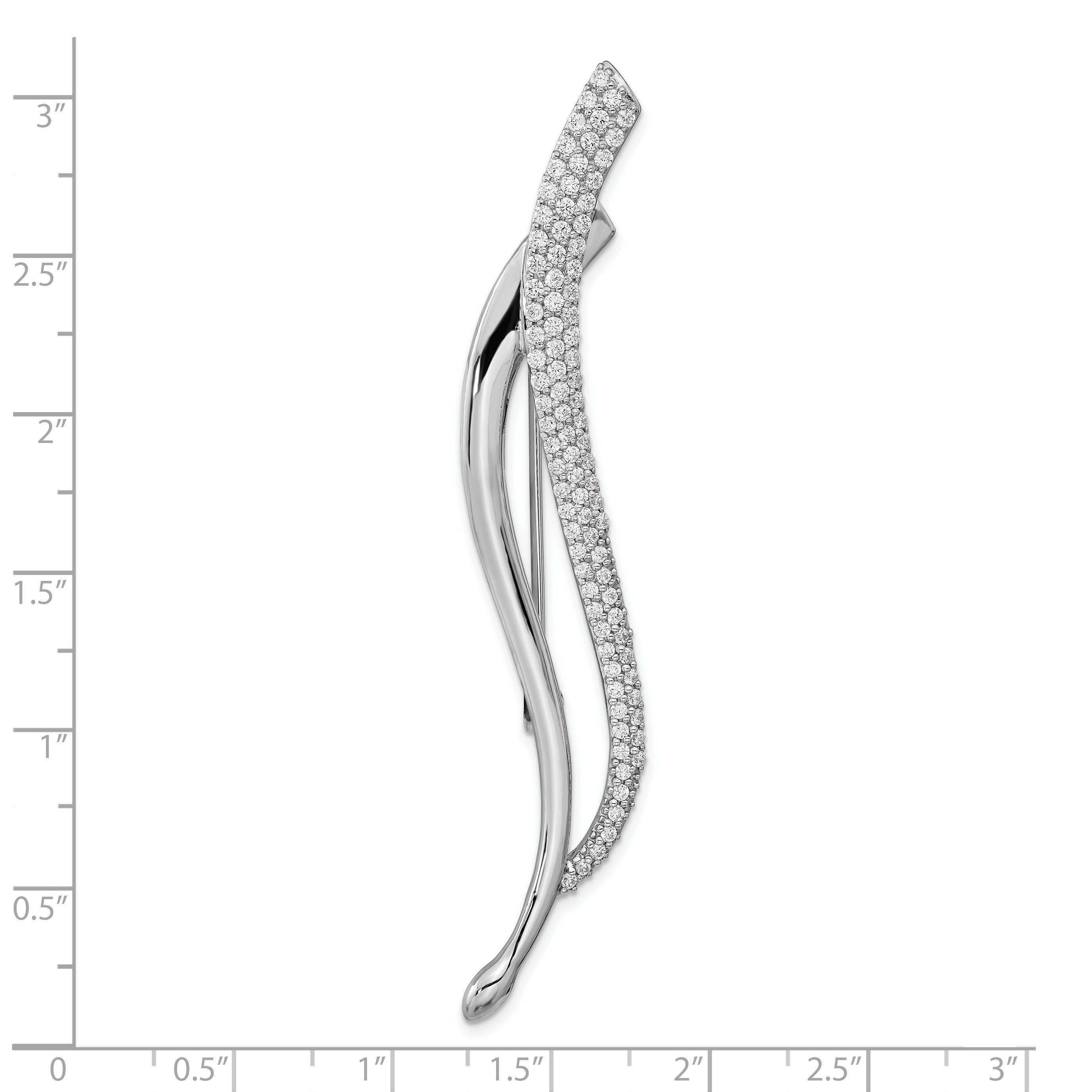 Sterling Silver Rhodium-plated CZ Fancy Curved Pin Brooch