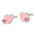 Sterling Silver Rhodium-plated Pink Enamel Double Heart Post Earrings