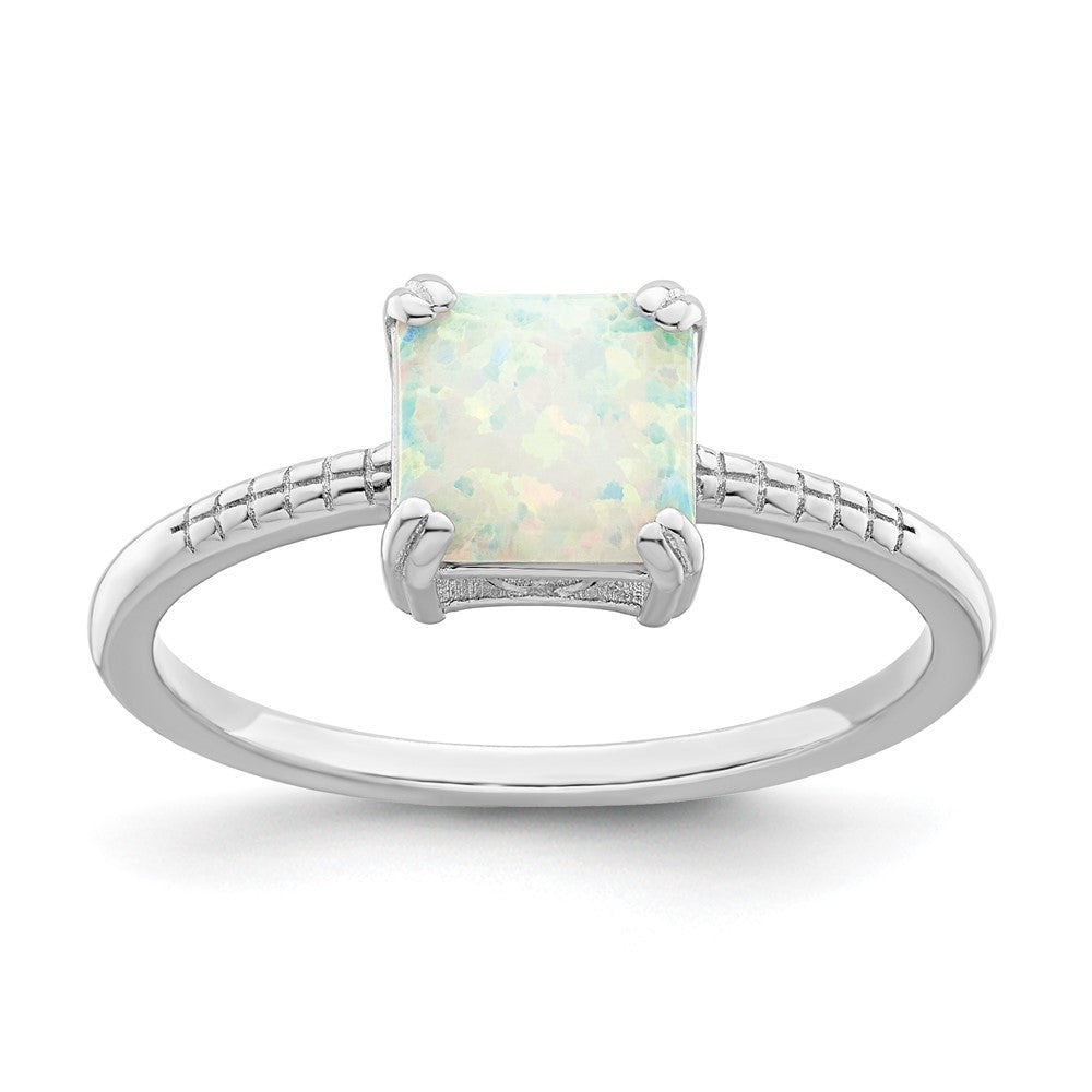 Sterling Silver Rhodium-plated Polished Square White Created Opal Ring