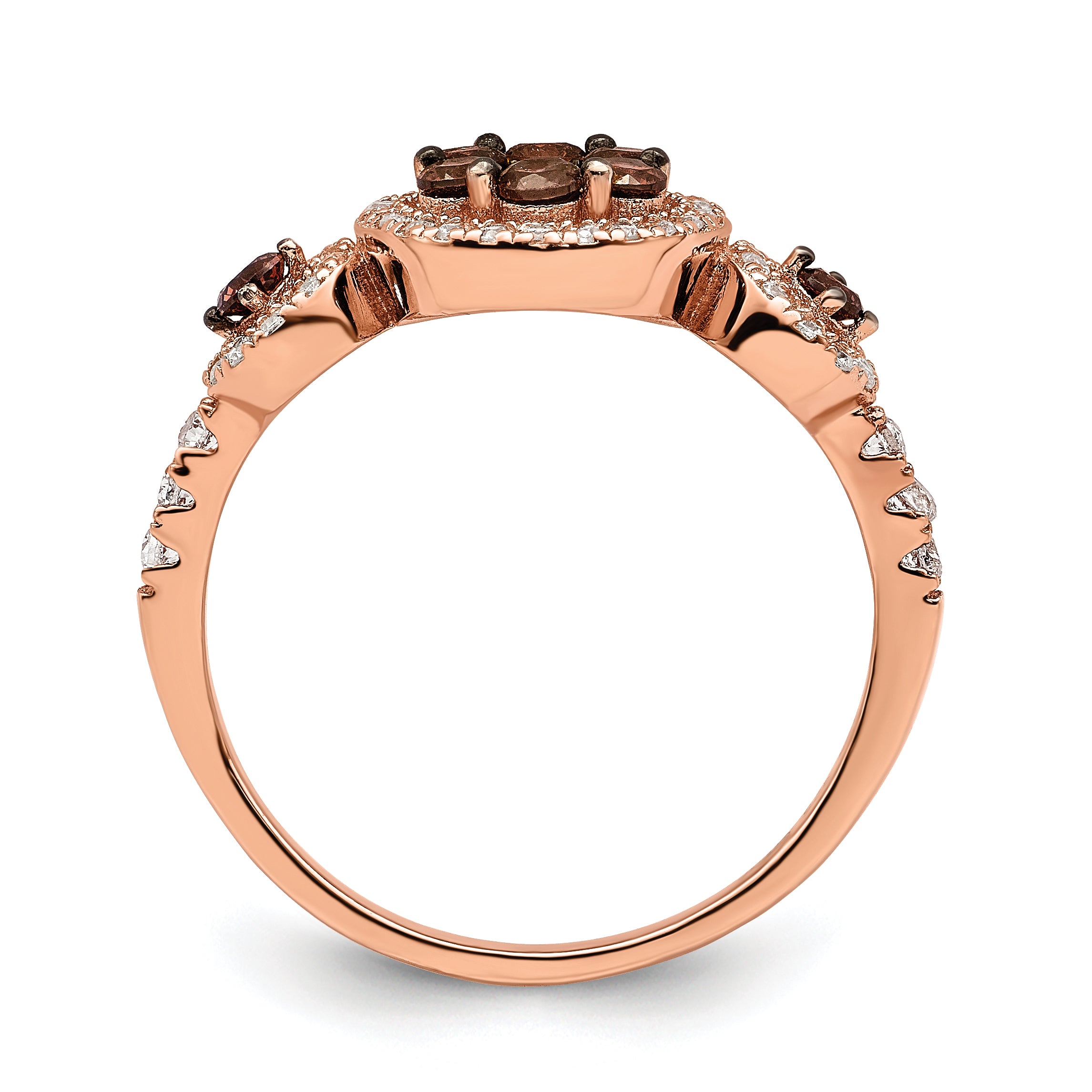 Sterling Silver Rose-tone Black Rhodium-plated CZ Fancy Ring